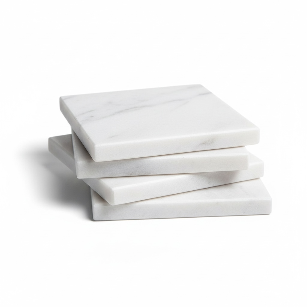 Set de patru suporturi pătrate, realizate manual din marmură naturală, cu finisaj lucios — accesorii elegante și durabile, ce adaugă un accent de rafinament mesei tale. Fiecare piesă este unică — variațiile naturale ale pietrei (nuanță, venaturi) conferă farmec și autenticitate.